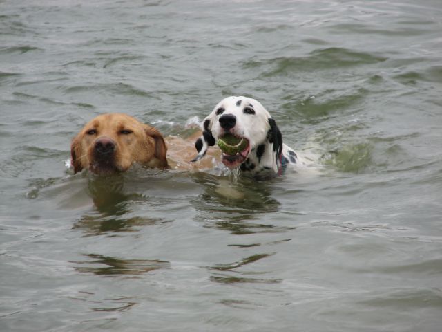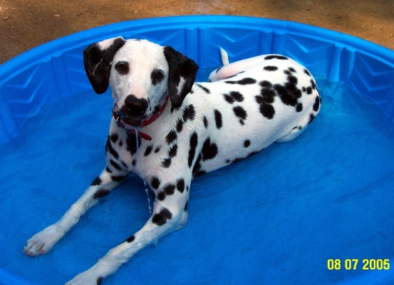 Sammie's sister Dolly lounges in the pool.